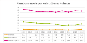 No obstante, previo al COVID-19 ya se observaba un aumento en el abandono escolar, el cual, de acuerdo con REDIM (2021), ha aumentado desde el ciclo escolar 2014-2015 para el nivel primaria y desde 2013-2014 para secundaria.